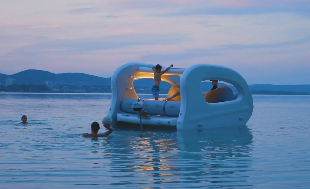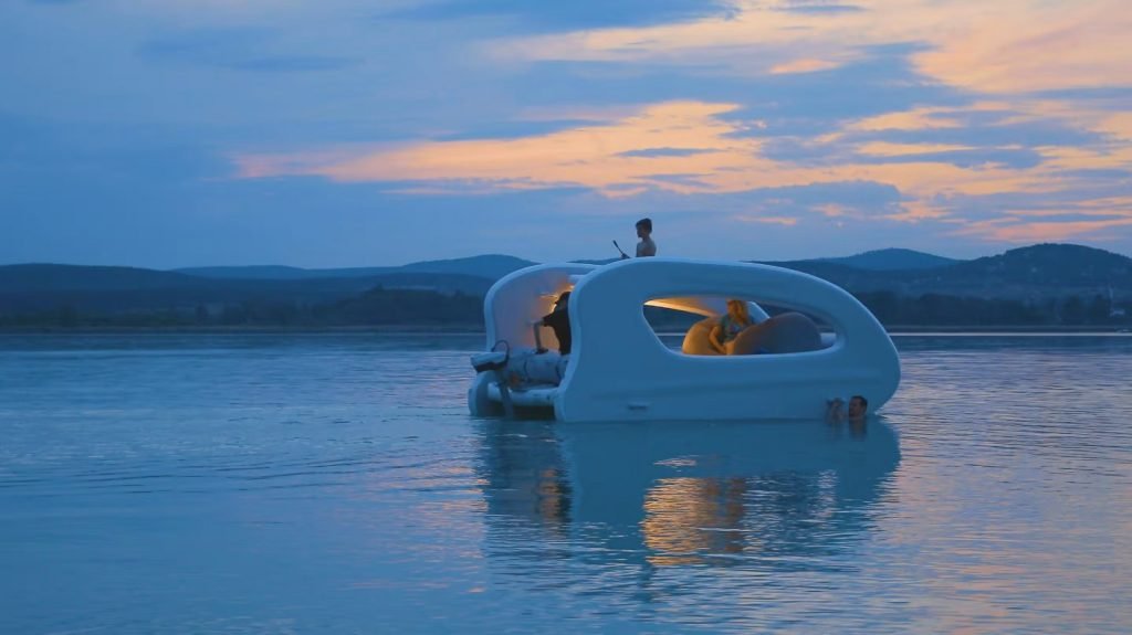 The Portless Catamaran is a unique type of boat since it is a sizable inflatable that can be transported to the water in a car. At the water’s edge, it instantly expands into a dual-deck cruiser and lounge that is propelled by a small electric outboard motor that is assisted by a flexible solar panel in moving along cleanly and quietly.