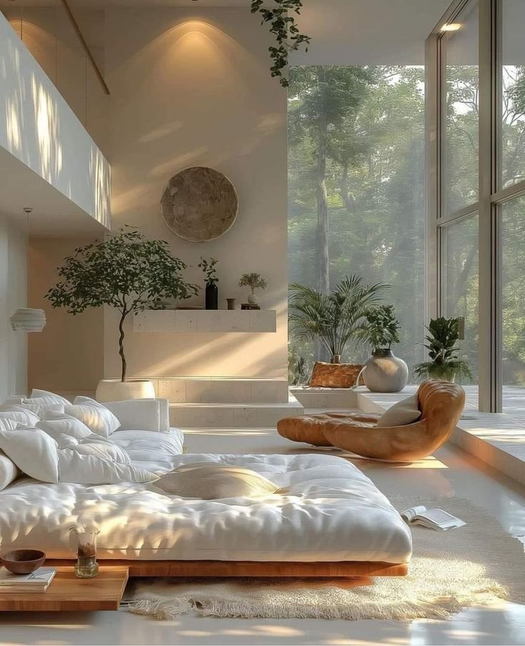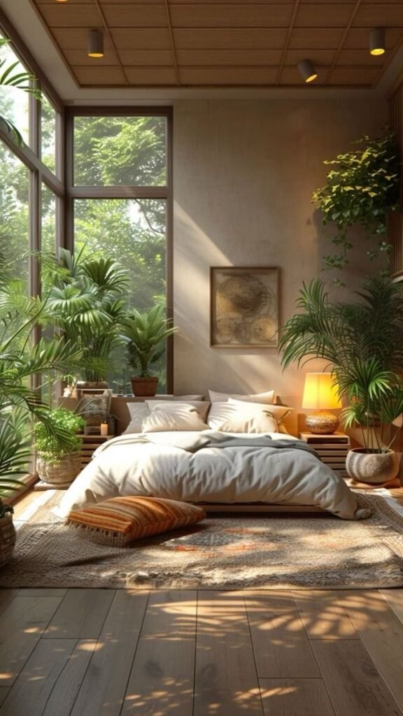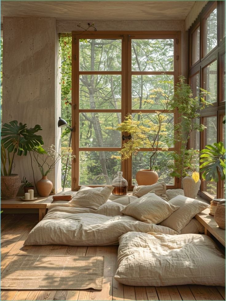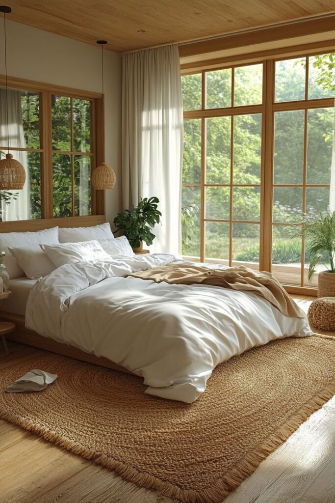 Incorporate natural materials like wood, bamboo, or stone in your furniture or decor to evoke a sense of calm and connect with nature.