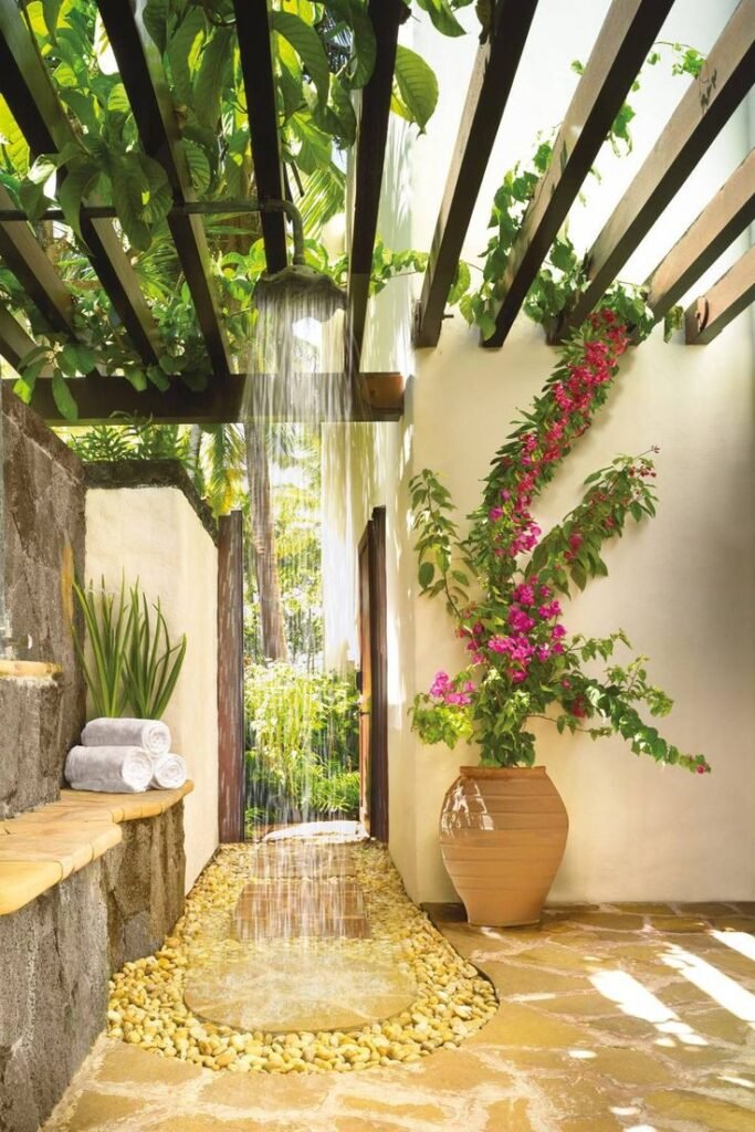 Check the blow stunning looking outdoor shower, not just to enjoy a shower bath but also will elevate your outdoor look.