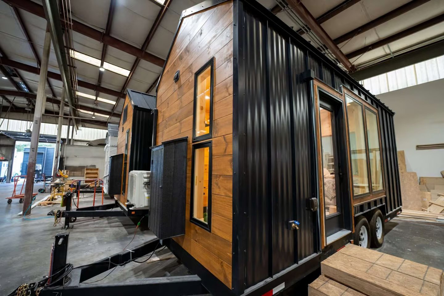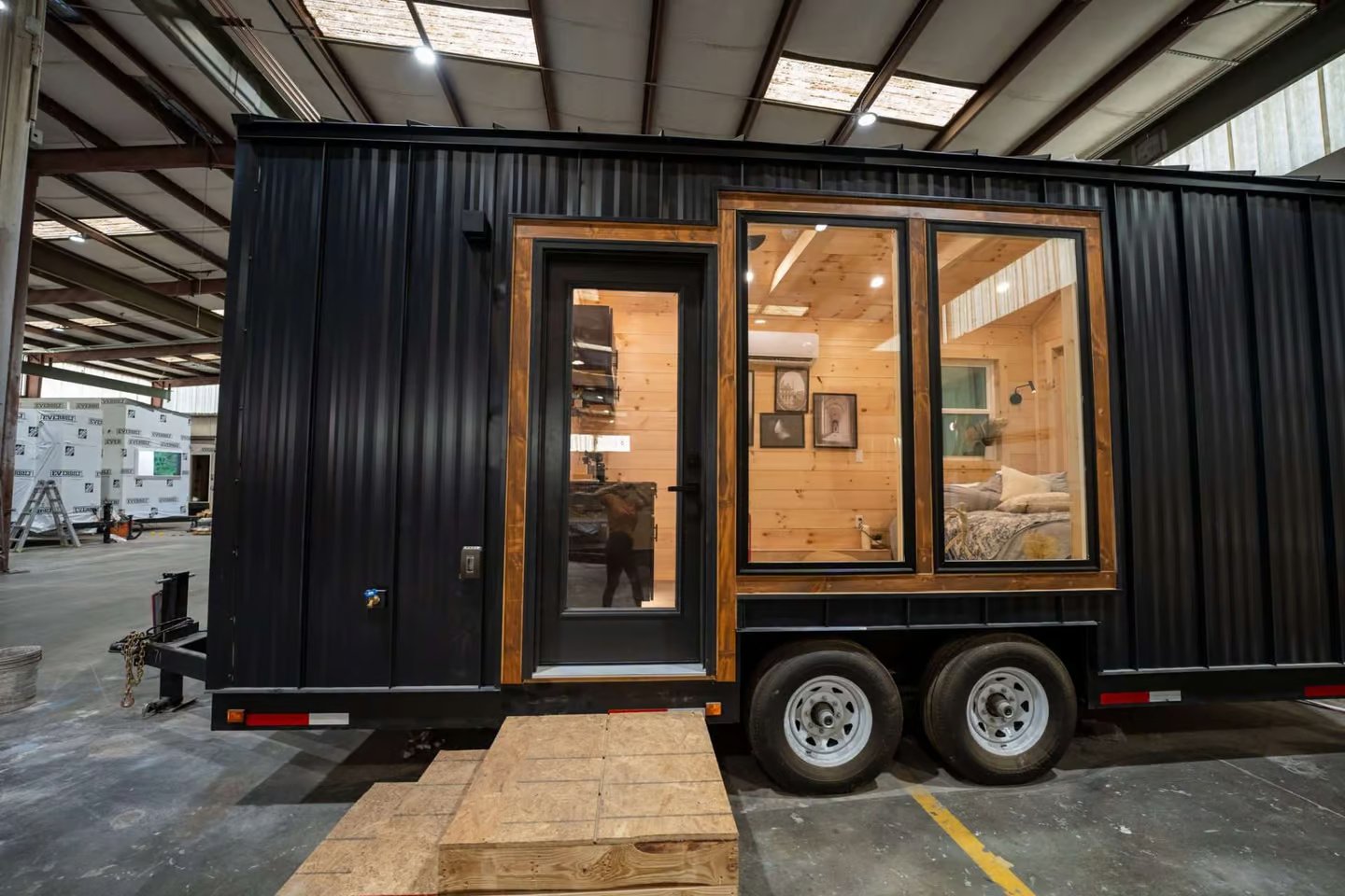 Built on a 20 ft double-axle trailer, the Kemi stands out with its sleek black standing seam metal siding and elegant wooden accents. While the Scandinavian influence may not be overly prominent, the light tones and open layout give the interior a bright and airy feel.