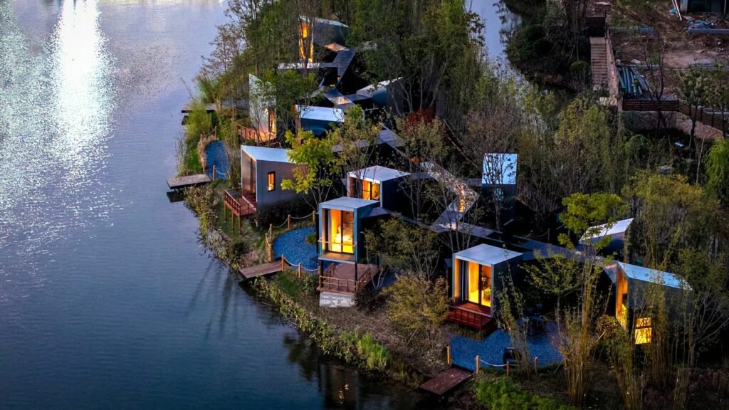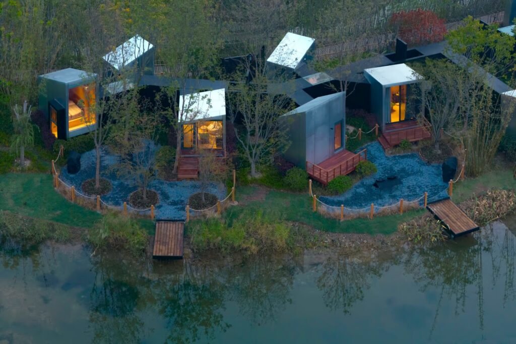 Known as Cabin of Maze, this groundbreaking retreat embraces “blurred” spatial relationships to offer a one-of-a-kind immersive experience. Nestled within Wuhan Ganlushan Culture Creativity City, a premier cultural and tourism hub in the north gate of Yangtze New Town, China, this architectural marvel seamlessly blends solitude with communal living.