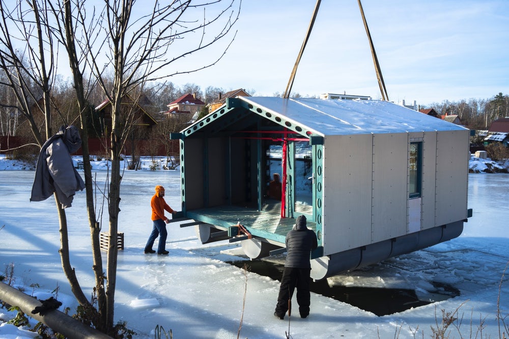 off grid floating cabin by BIo architect