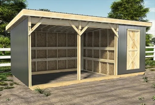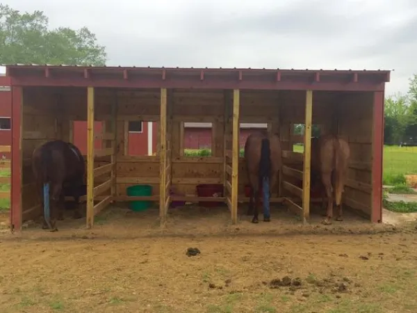 For added weather protection, you might want to consider building a three-sided horse shelter. This design allows your horses to have shelter from wind and rain while still having an open side for easy access. Ensure that the open side faces away from prevailing winds to keep the inside dry and comfortable.