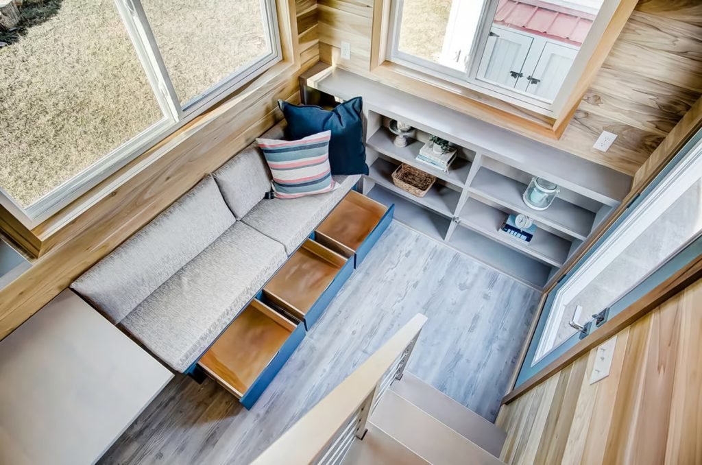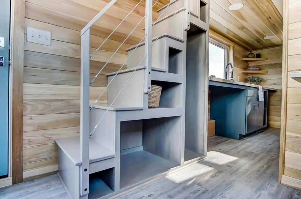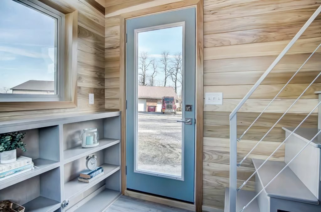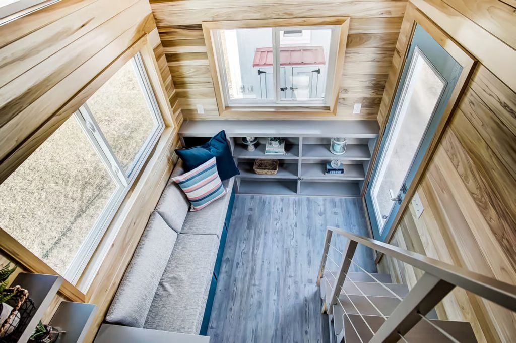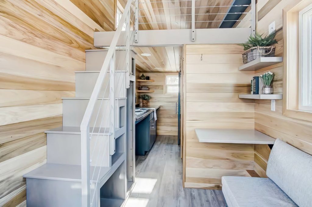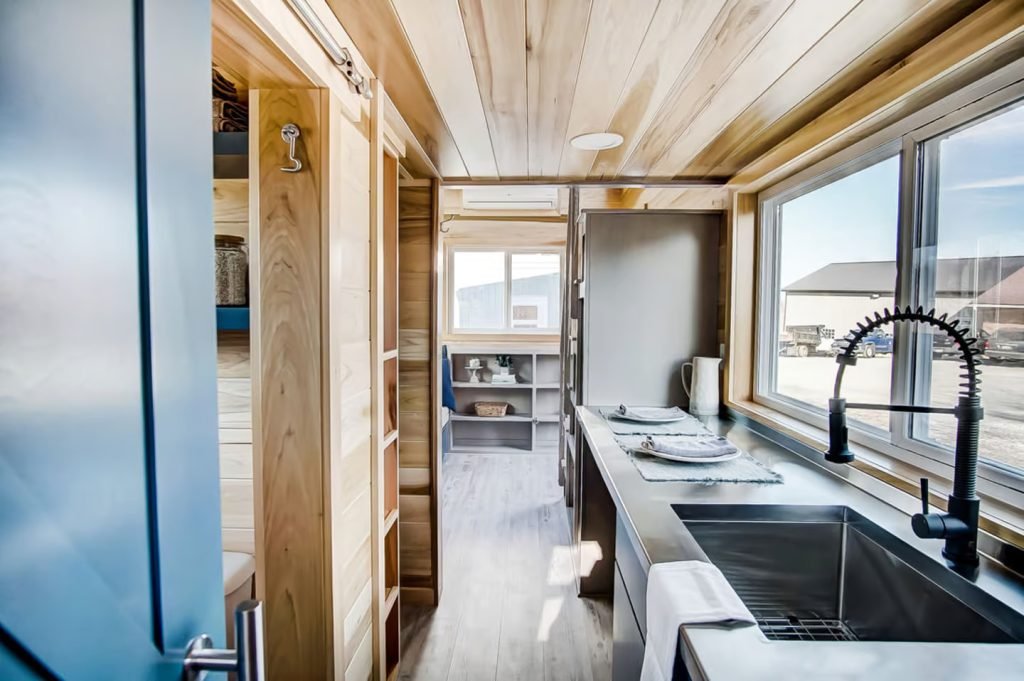 Named after the Buxton Lighthouse in North Carolina, this tiny house spans a mere 20 ft (6 m) in length. Compared to larger models like the Canada Goose, which is more than twice as long, the Buxton’s smaller size facilitates easier towing, especially for frequent travelers. It is built on a double-axle trailer and features engineered wood siding with a steel roof. Power is obtained through a standard RV-style hookup.