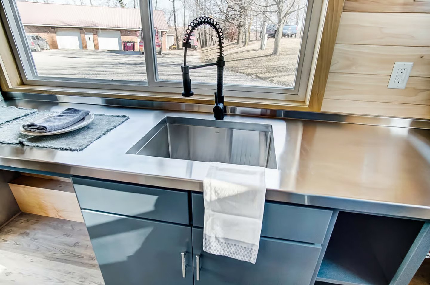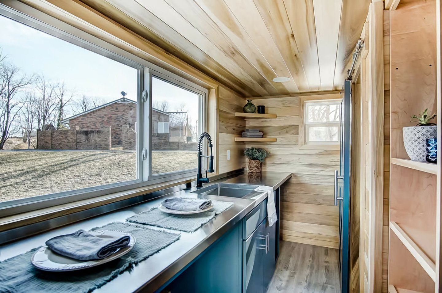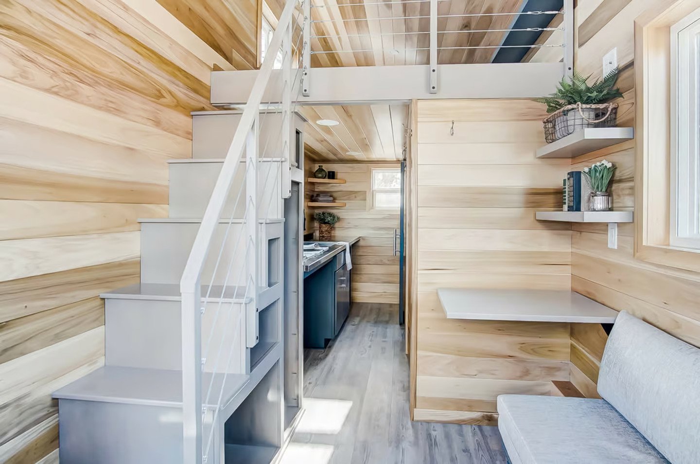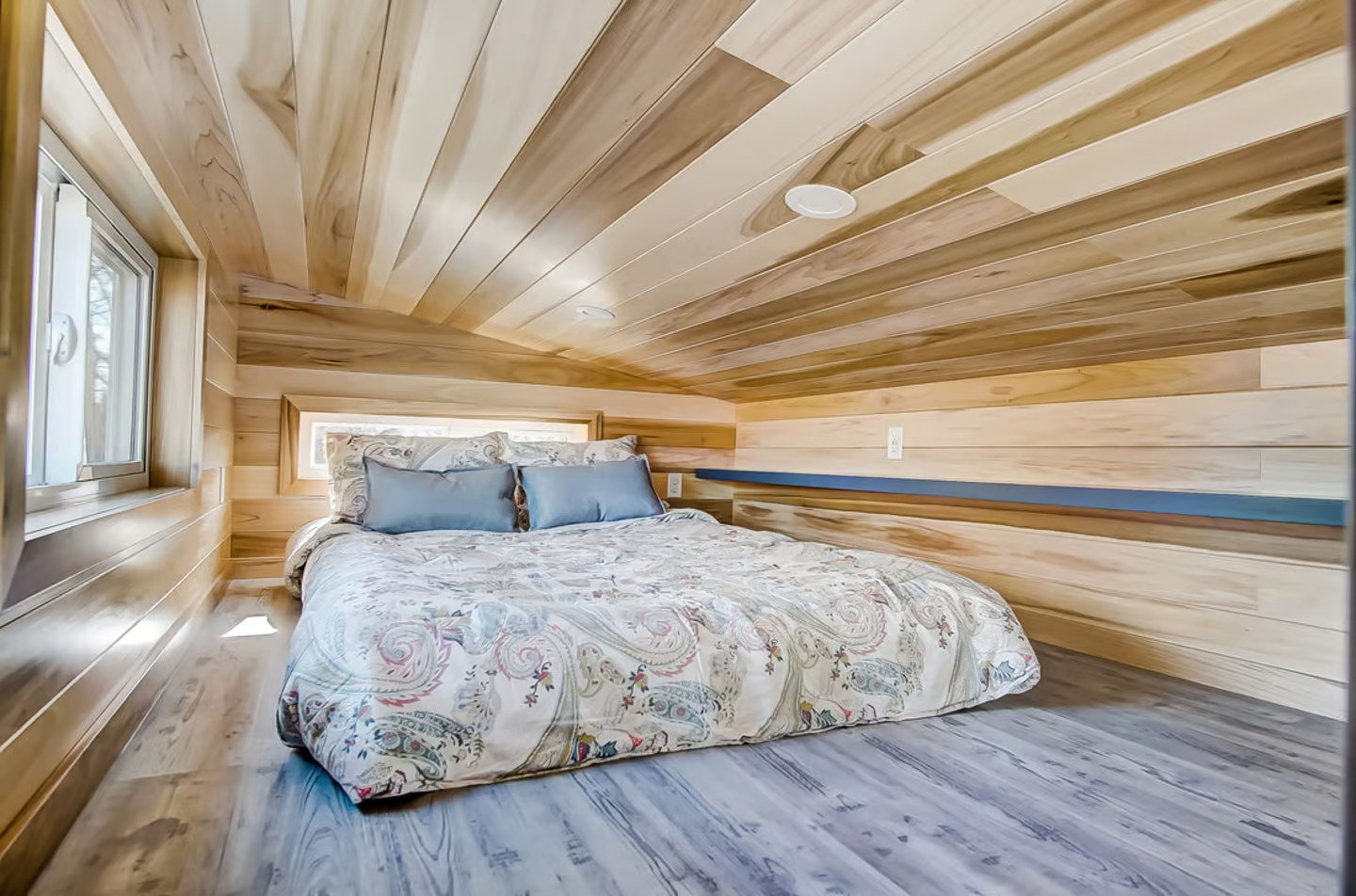 Named after the Buxton Lighthouse in North Carolina, this tiny house spans a mere 20 ft (6 m) in length. Compared to larger models like the Canada Goose, which is more than twice as long, the Buxton’s smaller size facilitates easier towing, especially for frequent travelers. It is built on a double-axle trailer and features engineered wood siding with a steel roof. Power is obtained through a standard RV-style hookup.