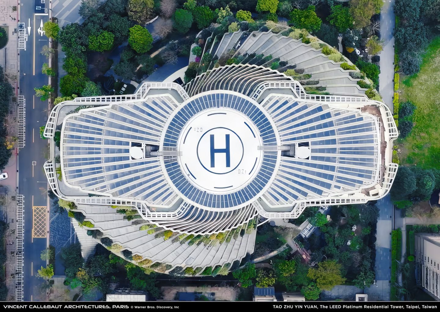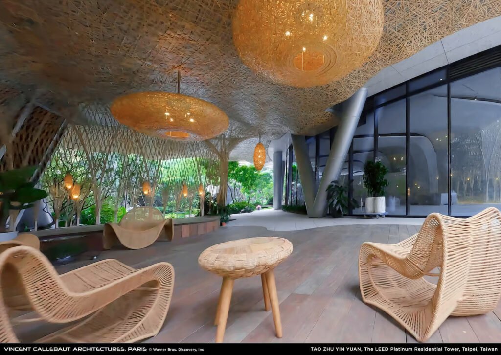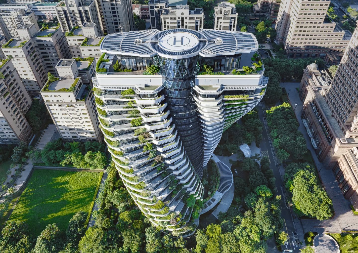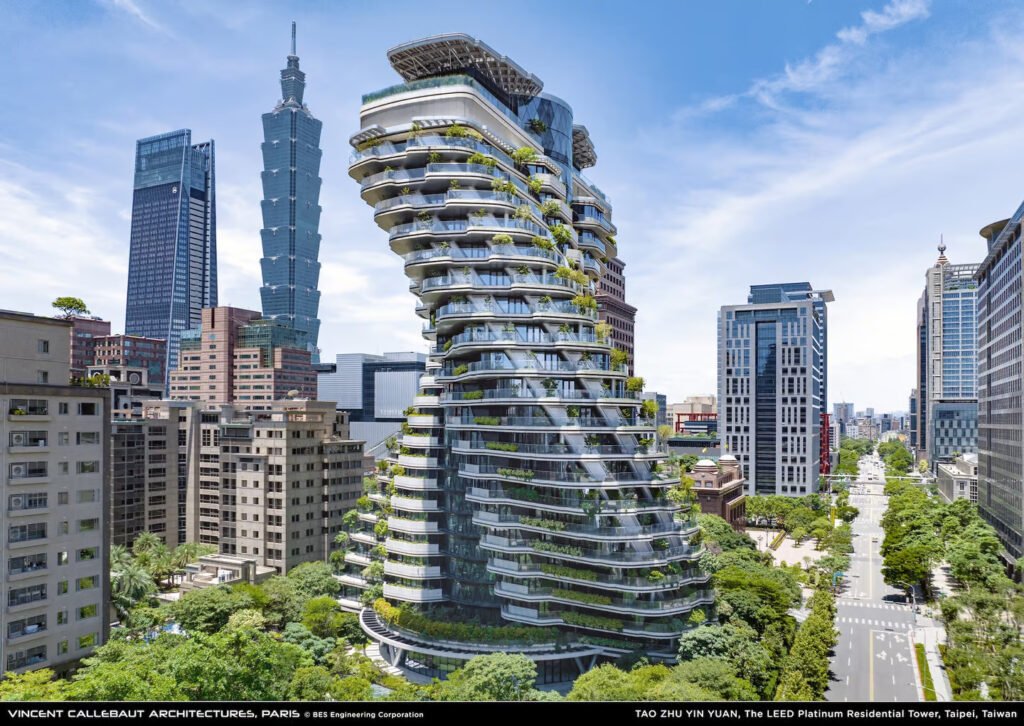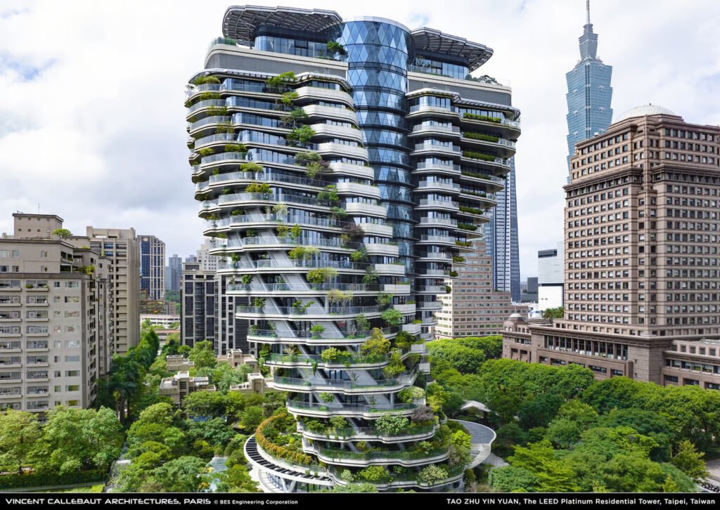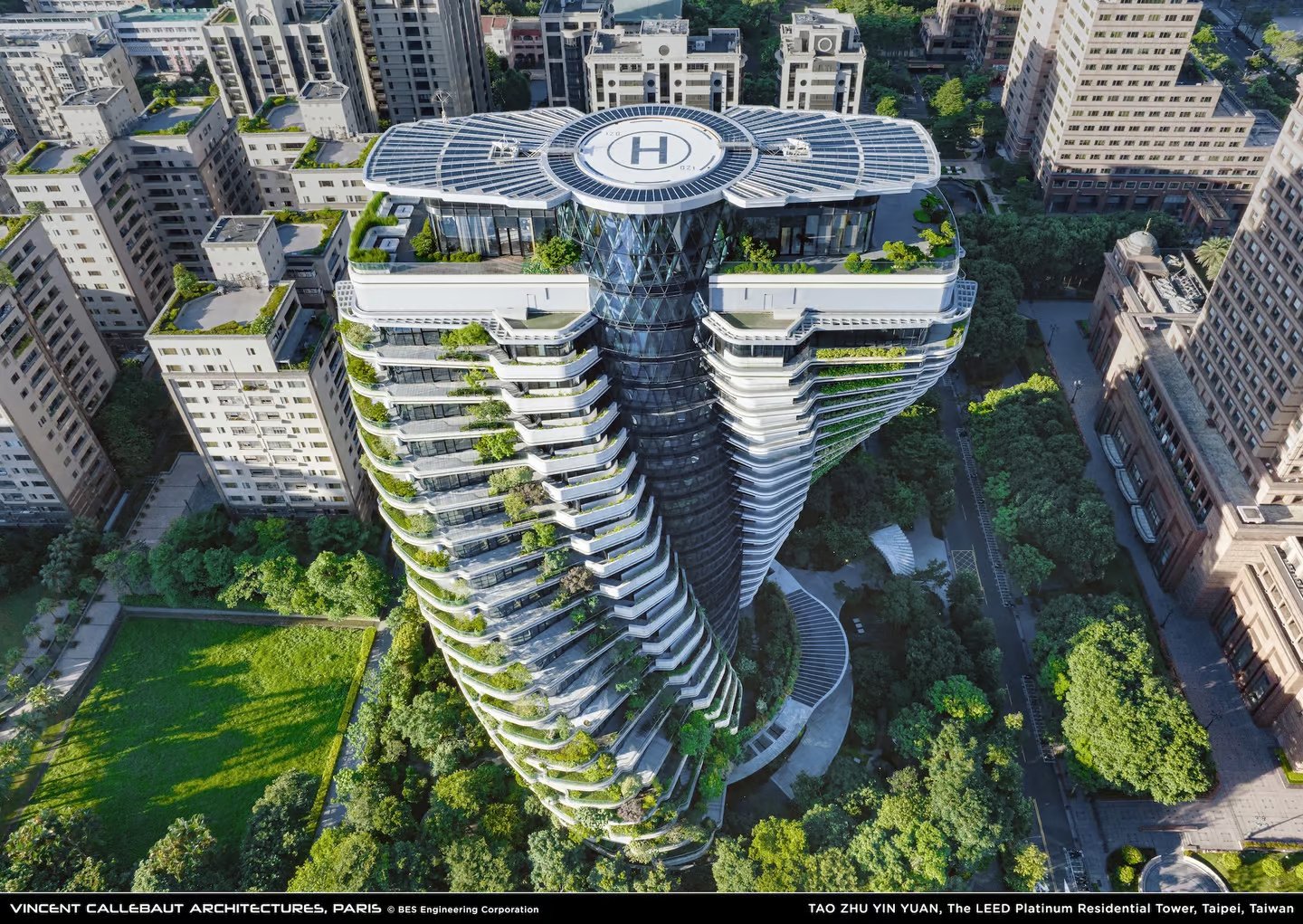 The Tao Zhu Yin Yuan tower exemplifies sustainable living, blending innovative design with green architecture to reduce its carbon footprint and create an inviting, eco-friendly environment for its residents.