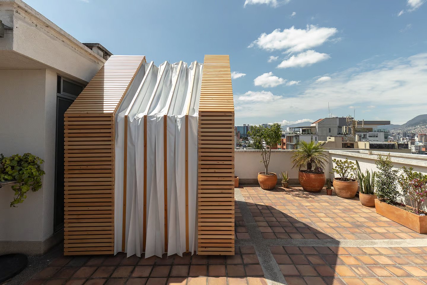 Here is a creative approach to compact living from Ecuadorian architects Juan Ruiz and Amelia Tapia. The Iwi, a building with a concertina-like shape that allows it to be folded in and stored away when not in use, may work well as a home office or guest room for folks with a restricted amount of space.