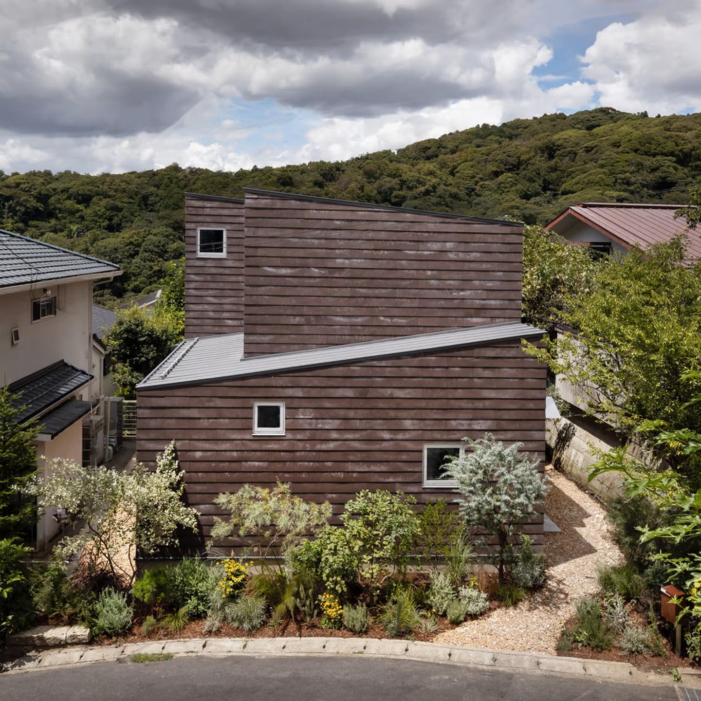 The house’s overarching structure comprises two L-shaped sections, each adorned with slanted tin roofs featuring opposing angles. Through the clever interlocking of these two volumes, the architects have fashioned a one-of-a-kind design that effortlessly harmonizes with Kamakura’s picturesque mountainous backdrop.