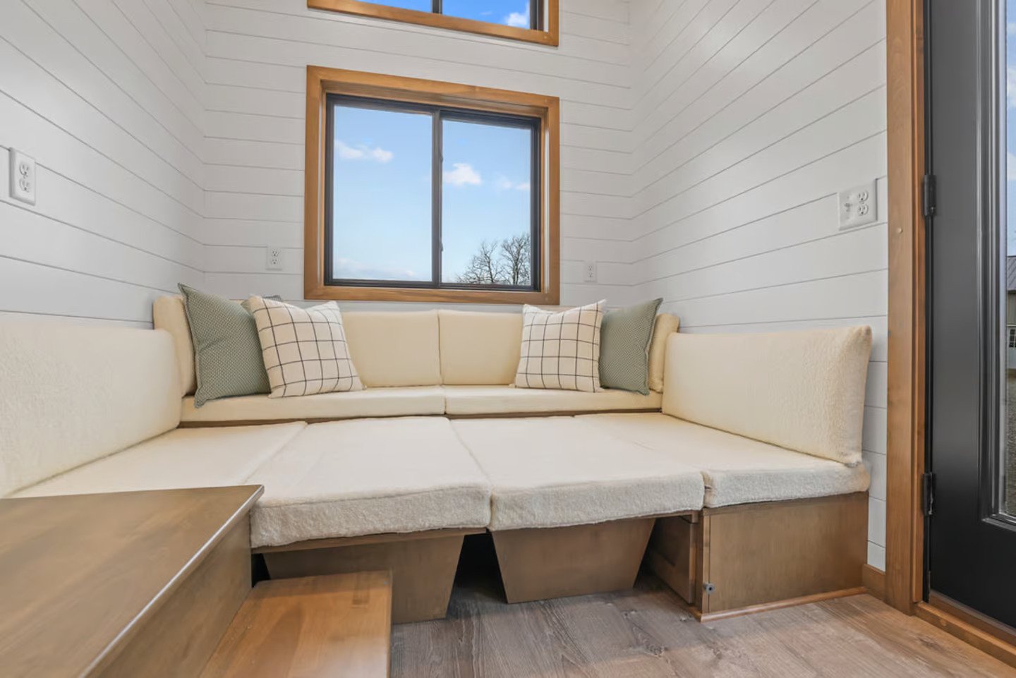 While just being 24 feet (7.3 metres) long, the Coastal Modern makes up for its small size with a versatile and well-lit interior. Many storage spaces and foldable furnishings are included in the compact house, which also has a living room that serves as a guest bedroom.