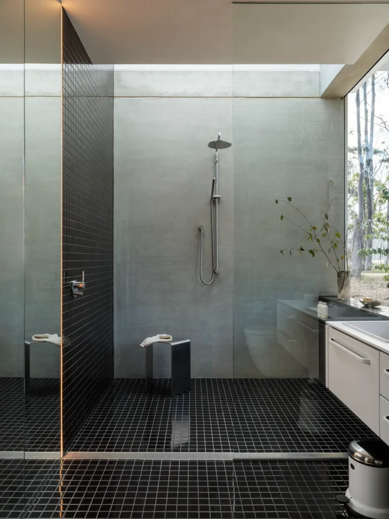 One of the standout features of the Vipp Tunnel is its commitment to sustainability. The west-facing facade is fitted with solar panels that charge a battery array, ensuring reliable off-grid power. The home is equipped with heated flooring and air conditioning, maintaining a comfortable climate year-round. Additionally, all water is sourced from a rainwater collection system and filtration unit, minimizing environmental impact. During construction, Room11 carefully surveyed the surrounding trees and adjusted roadwork plans to preserve the natural landscape.