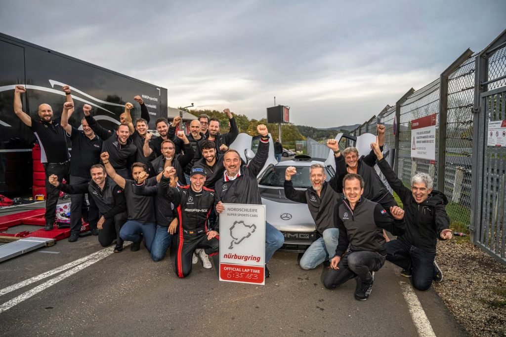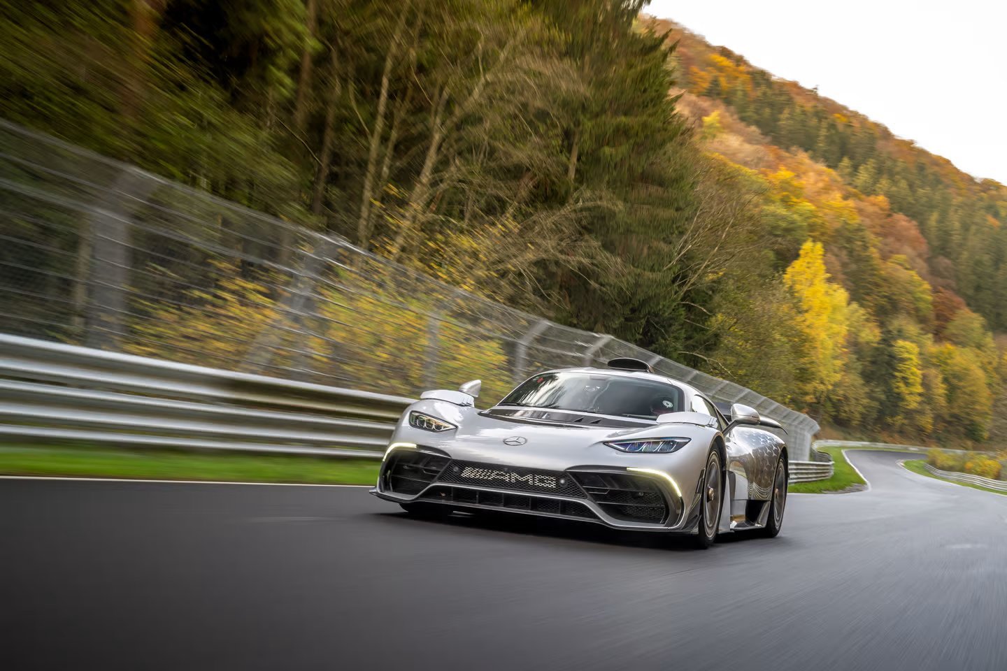Despite spending a longer time in the womb than most, the Mercedes-AMG One is already making excellent progress. The One rolled out its Michelin Pilot Sport Cup 2 R MO tyres on the revered North Loop asphalt in late October and lapped the 12.944-mile (20.832-km) circuit in a record-breaking 6:35.183, less than six months after making its formal debut in production form (five long years later). On the conventional, slightly shorter 12.8-mile (20.5-km) Sport Auto magazine “Super Test” Nordschleife track version, Mercedes reports a time of 6:30.705.
