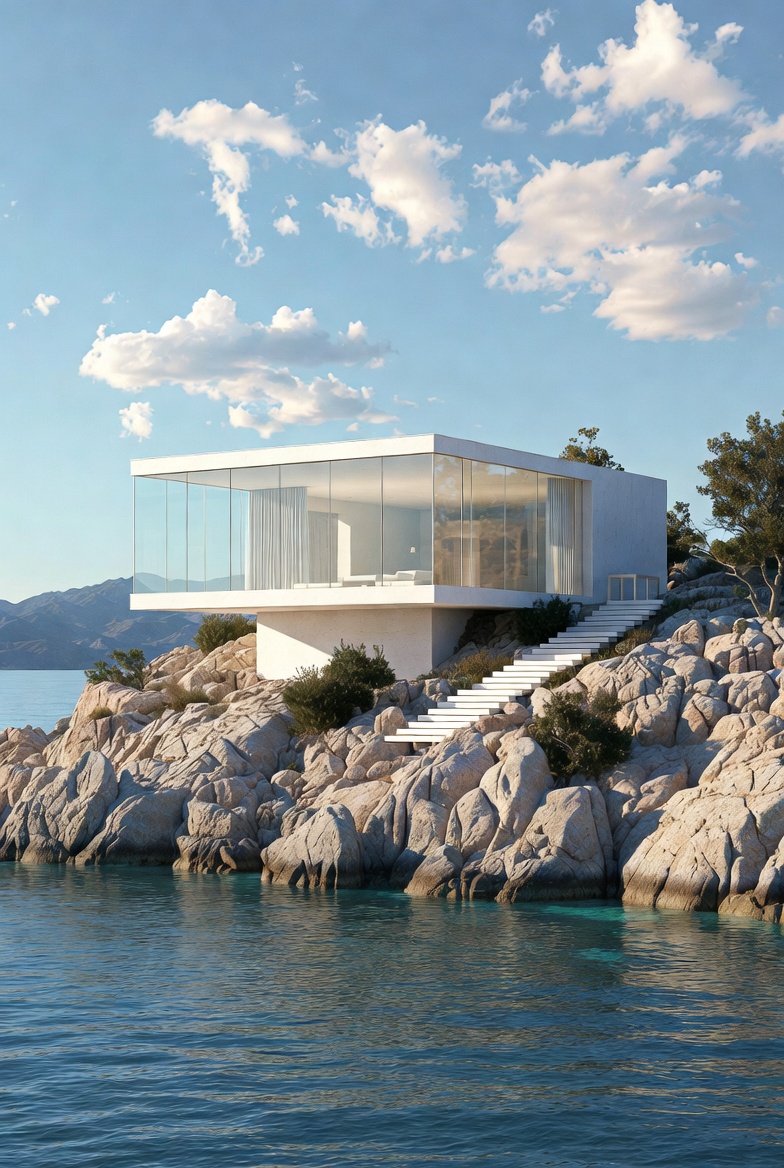 12-Yoga Pavilion by the Shore: Build a glass-enclosed pavilion for wellness sessions, with heated floors and ambient lighting in your waterfront villa.