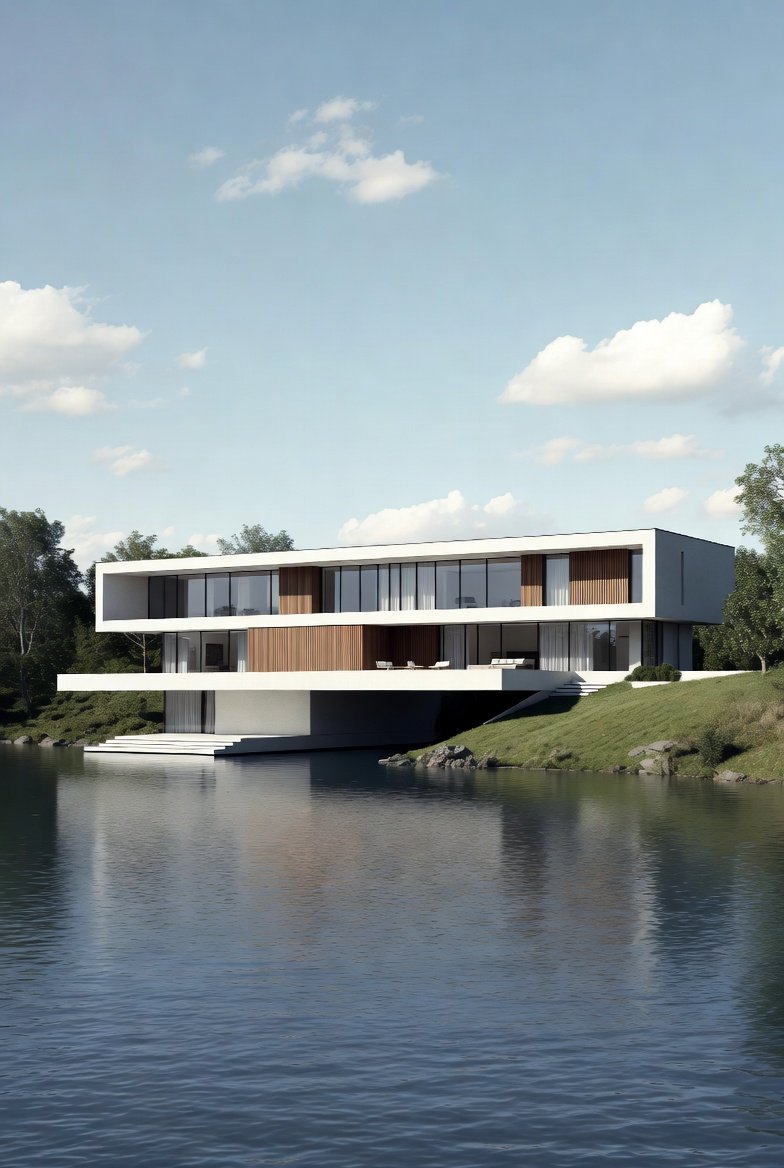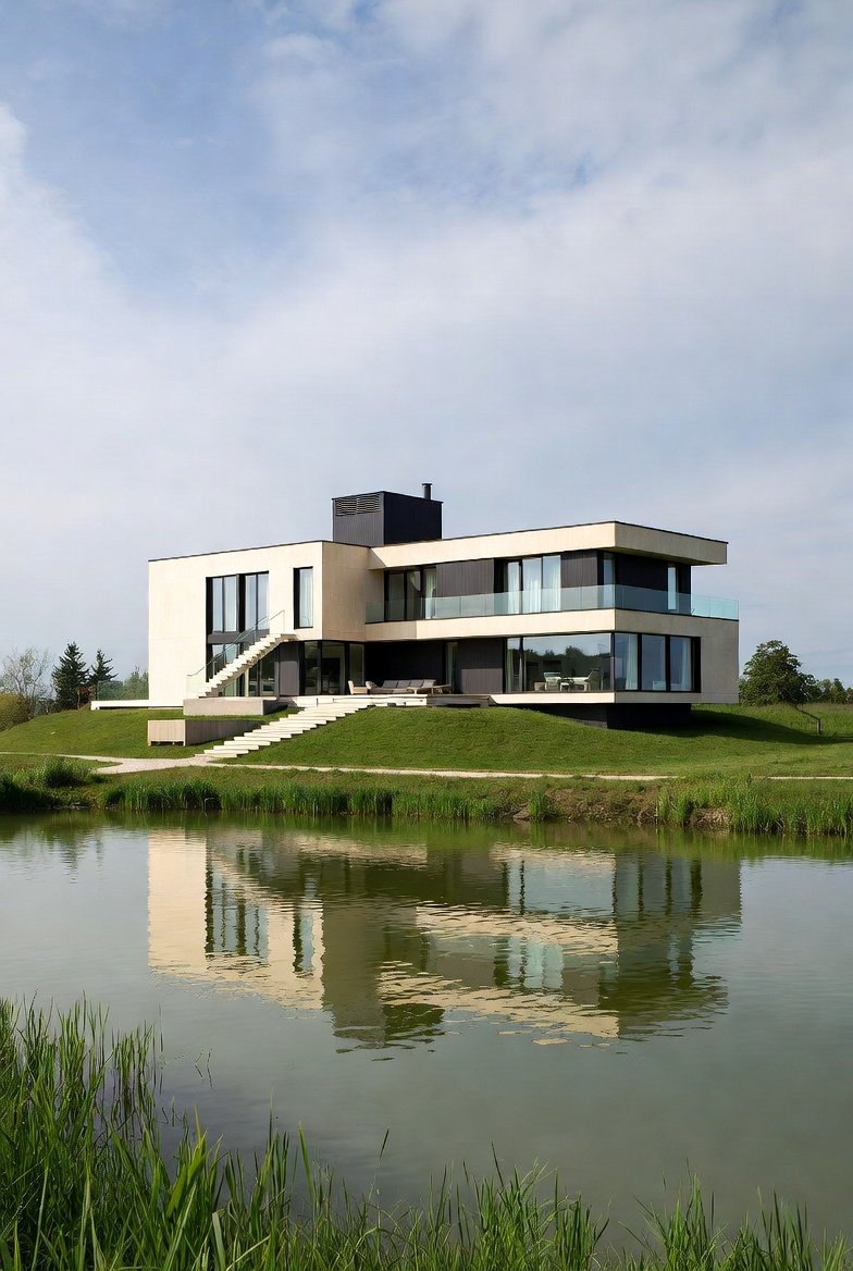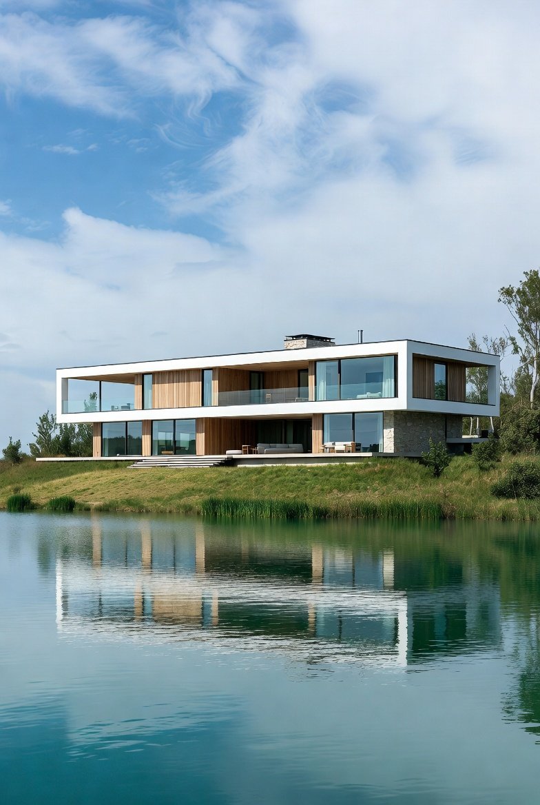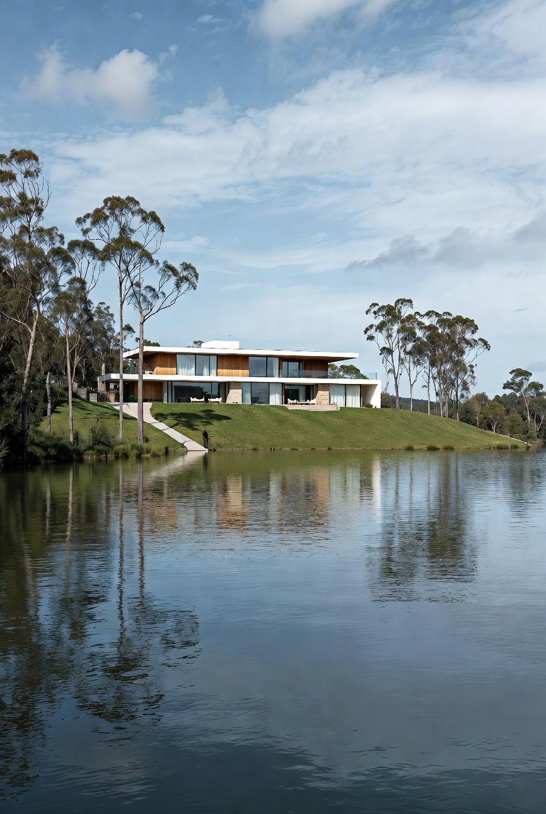 29-Wind-Resistant Architectural Features: Incorporate curved roofs and reinforced materials to withstand lakeside weather in your durable lakeside villa.