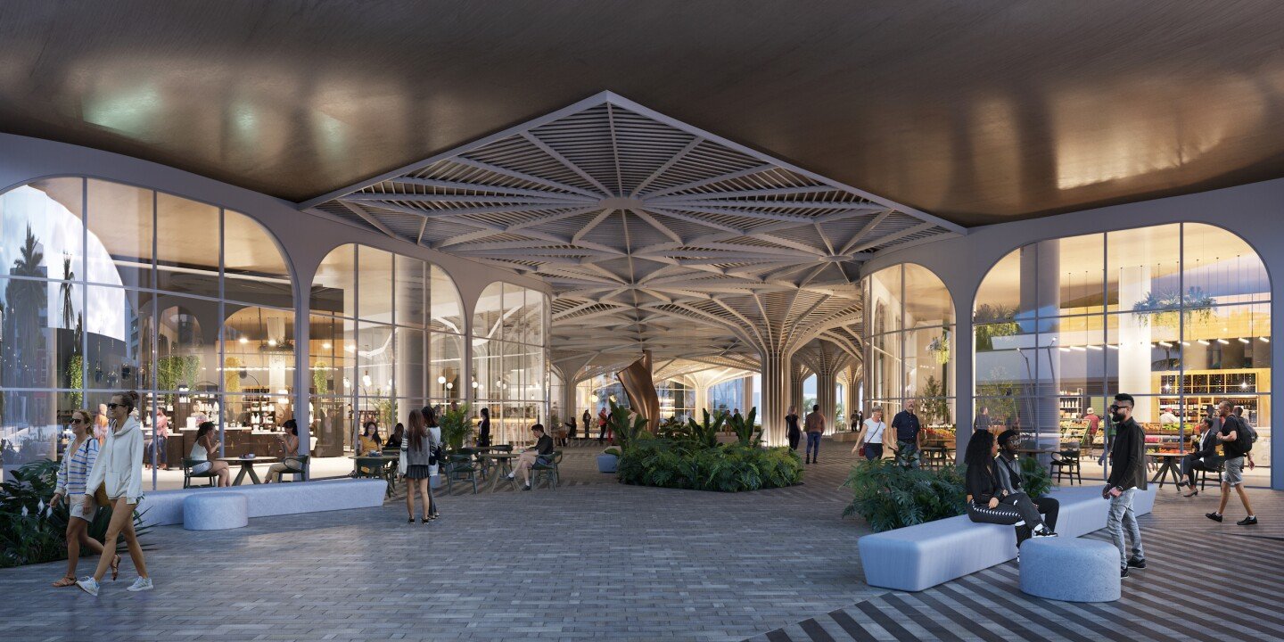 Most of the interior space will be taken by 956 residential units along with two floors hosting penthouse suites and some retail space on ground level.