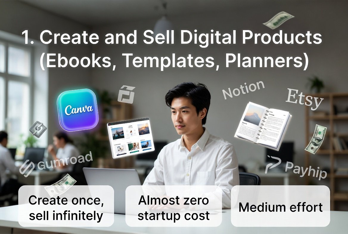 1. Create and Sell Digital Products (Ebooks, Templates, Planners)