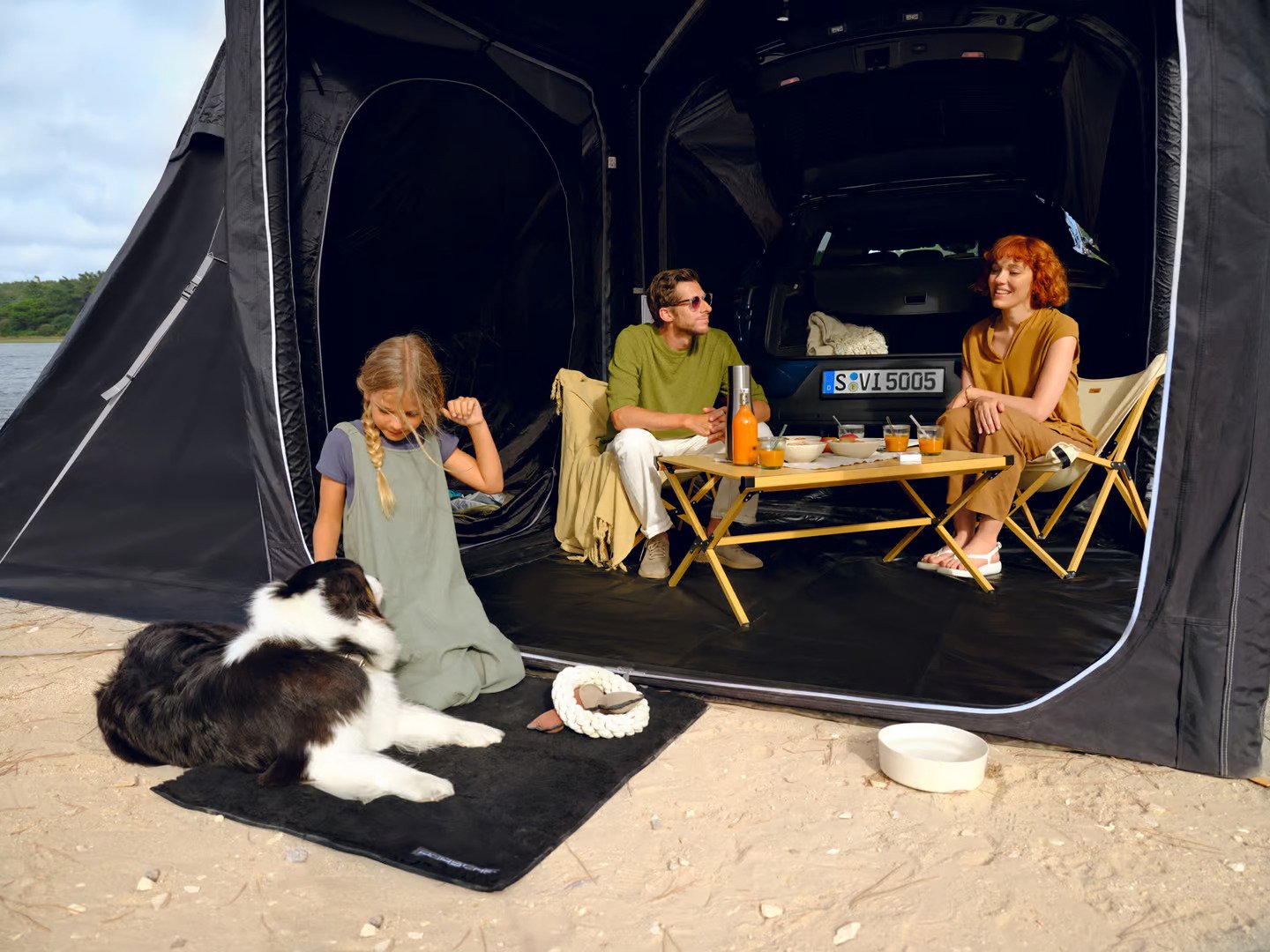 Vehicle-Connected Shelter: The tent connects directly to your Porsche’s tailgate, providing a weather-protected area for loading and unloading.