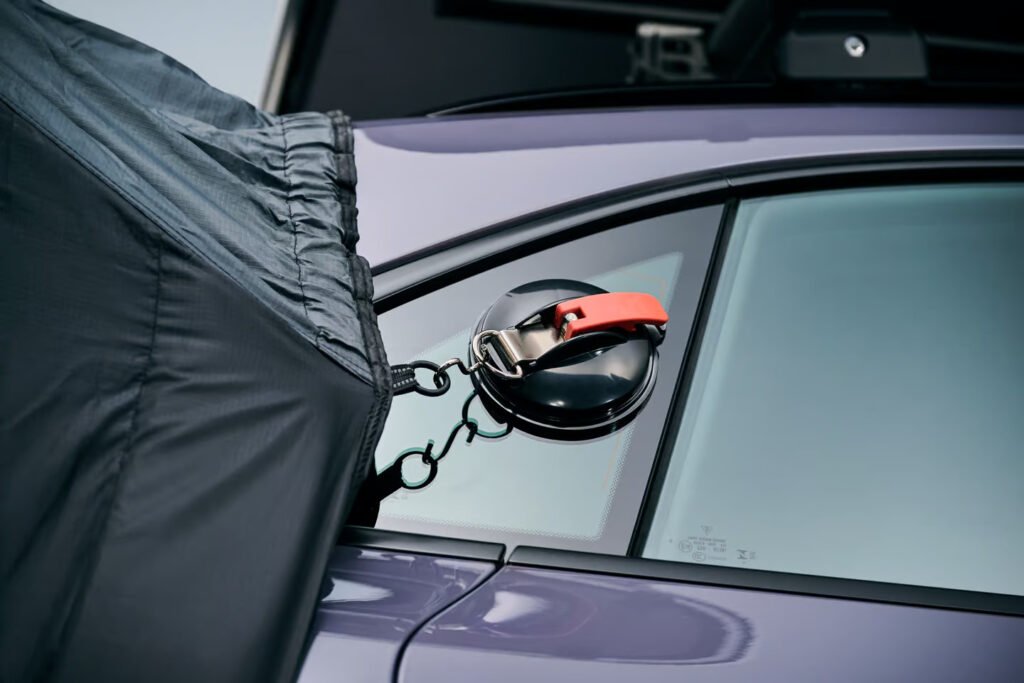 Porsche’s design ensures the tent anchors securely to the vehicle using elastic bands, suction cups, and ground stakes, providing stability during light winds. While this setup shields your car’s trunk from the elements, the real appeal lies in its clever design that allows you to load and unload your vehicle without being exposed to inclement weather.