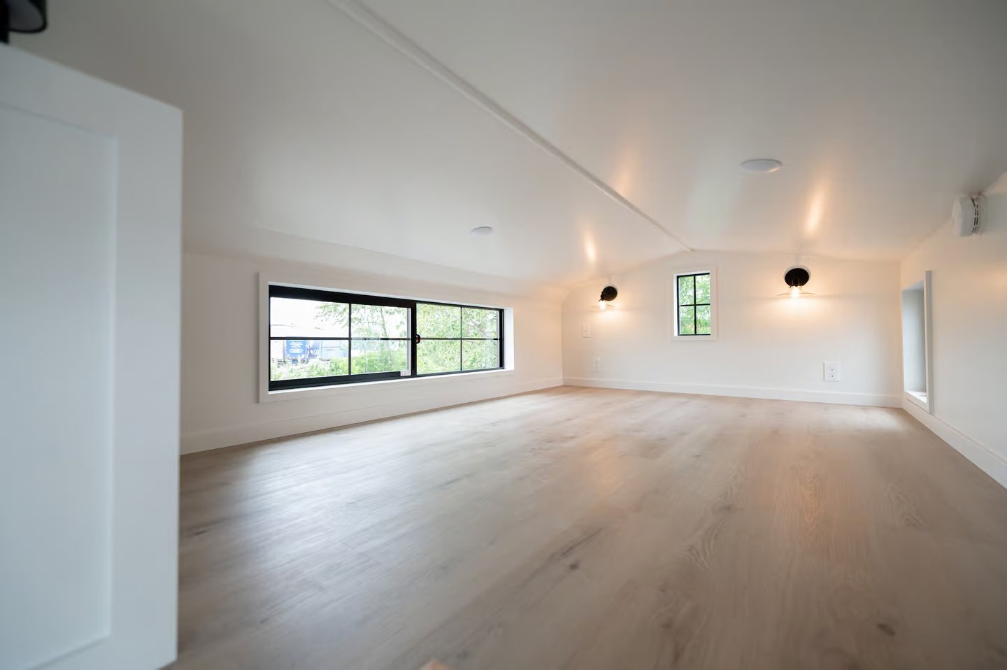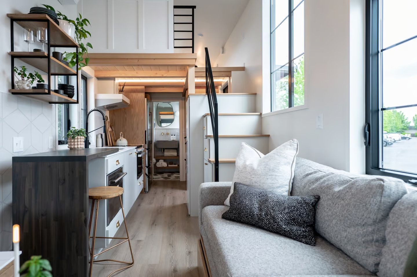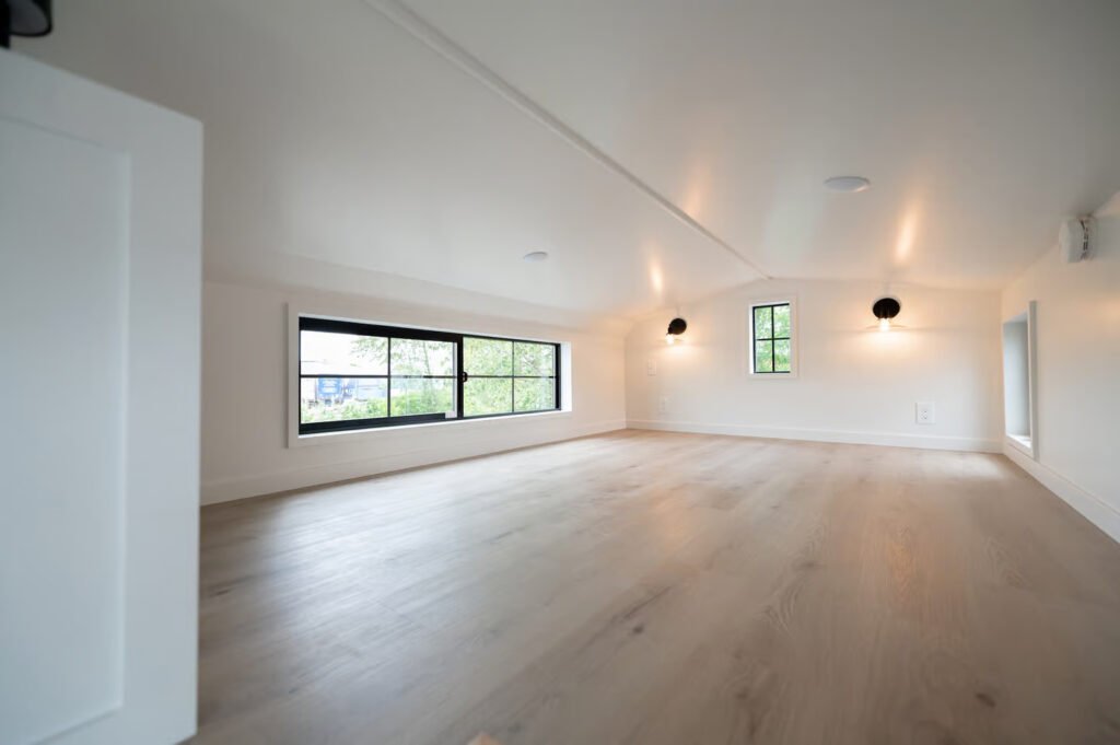 The Kootenay Inventory stands out for its two-bedroomlayout, which offers a level of privacy rarely seen in tiny homes. The master bedroom is located on the ground floor, offering enough headroom to stand comfortably.