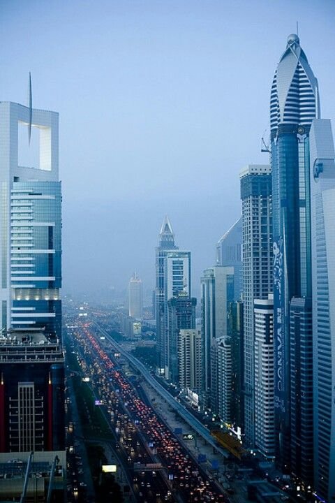 Sheik Zayed Road is the primary avenue going through Dubai’s cutting edge downtown business region. This wide, eight-path expressway is rimmed with towering glass, chrome and steel high-rises along its length.