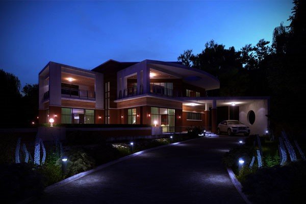 10. Modern House at Night: