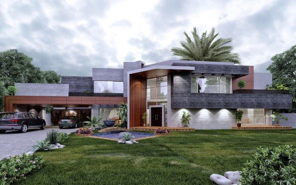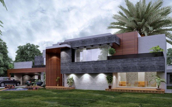 The photograph demonstrates a contemporary house outside in Faisalabad outlined from a gathering called plan works foreordained from Pakistan. Consolidating cement and wood composition making it look more exquisite.