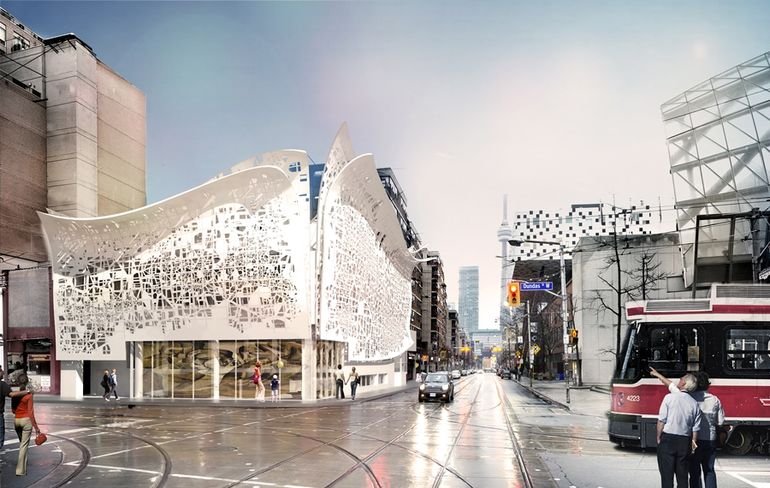 Bortolotto architects is going to wrap an interactive facade around the south-east corner of a building in Ontario College of Art and Design University. The passers-by will be able to read mapping data of local area embedded in the façade by photographing it.