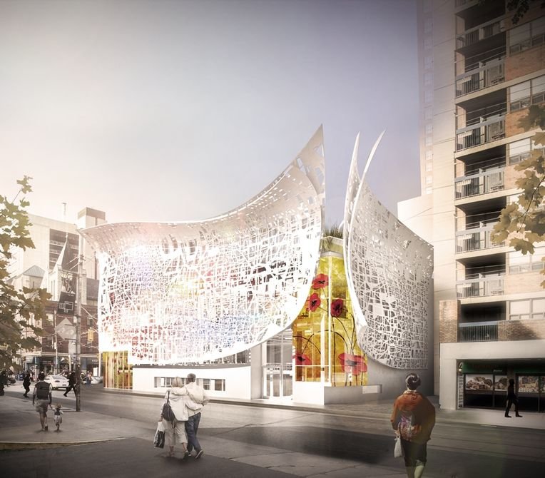 An interactive façade is to be wrapped around the south-east corner of a building at the Ontario College of Art and Design University (OCAD) in Toronto. Its design is based on mapping data from the local area. Passers-by will be able to read information embedded in the façade by photographing it.