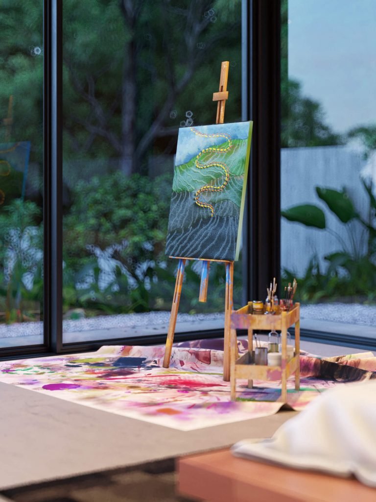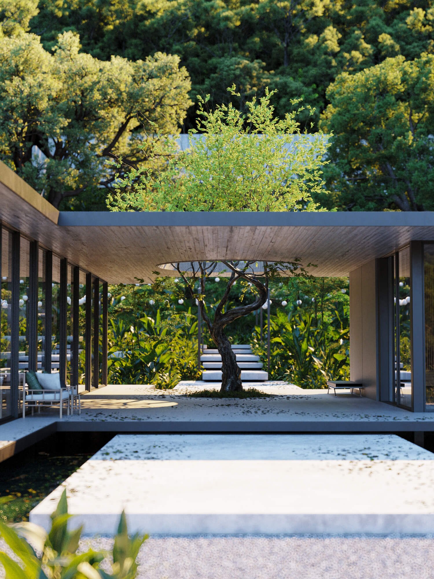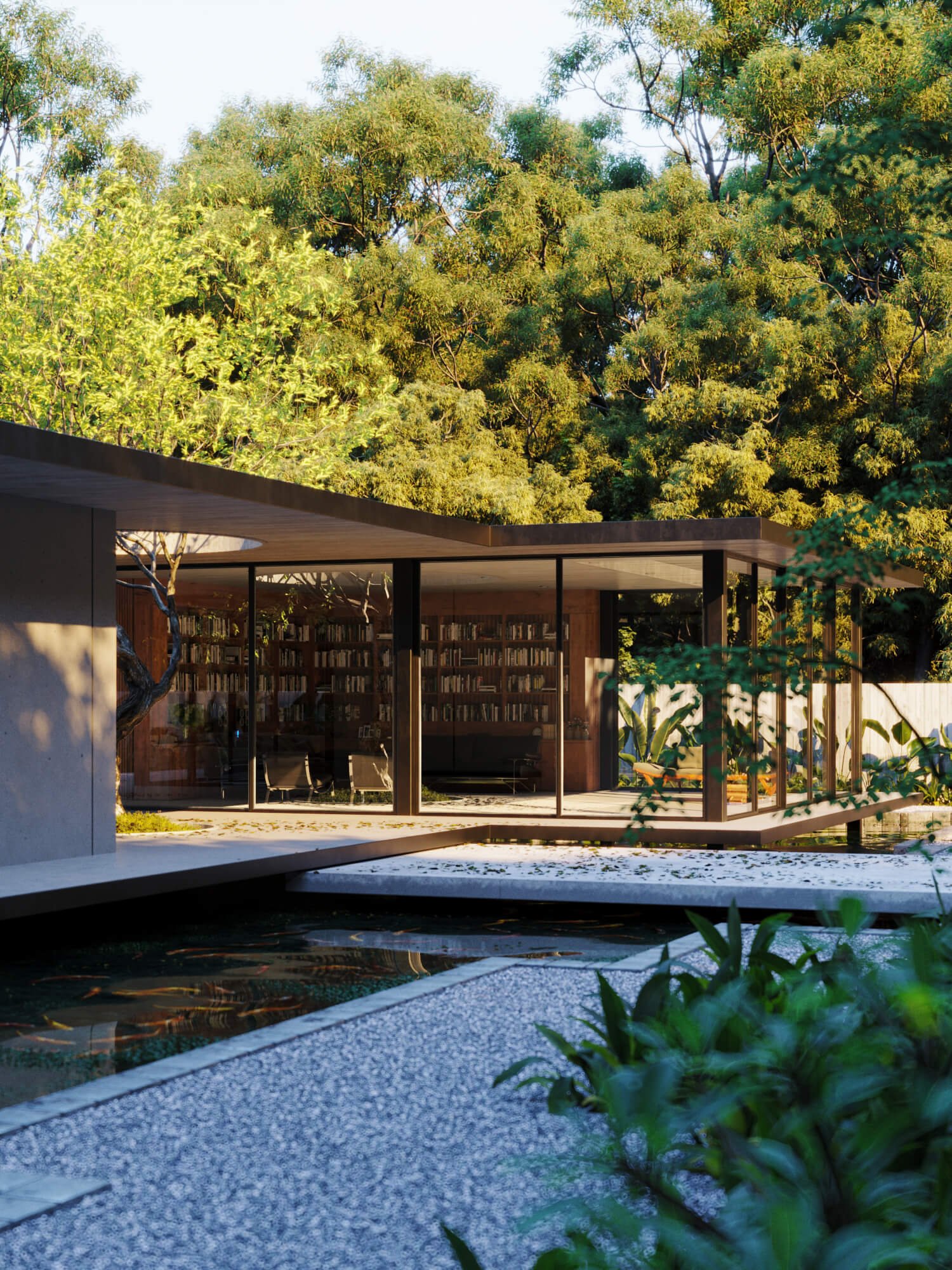 Koi House was created as a place for meditation and relaxation for a couple of artists. The ideal setting for two artists to unwind may include the sound of fish flowing in the water and the stunning view of the Mazandaran mountains.
