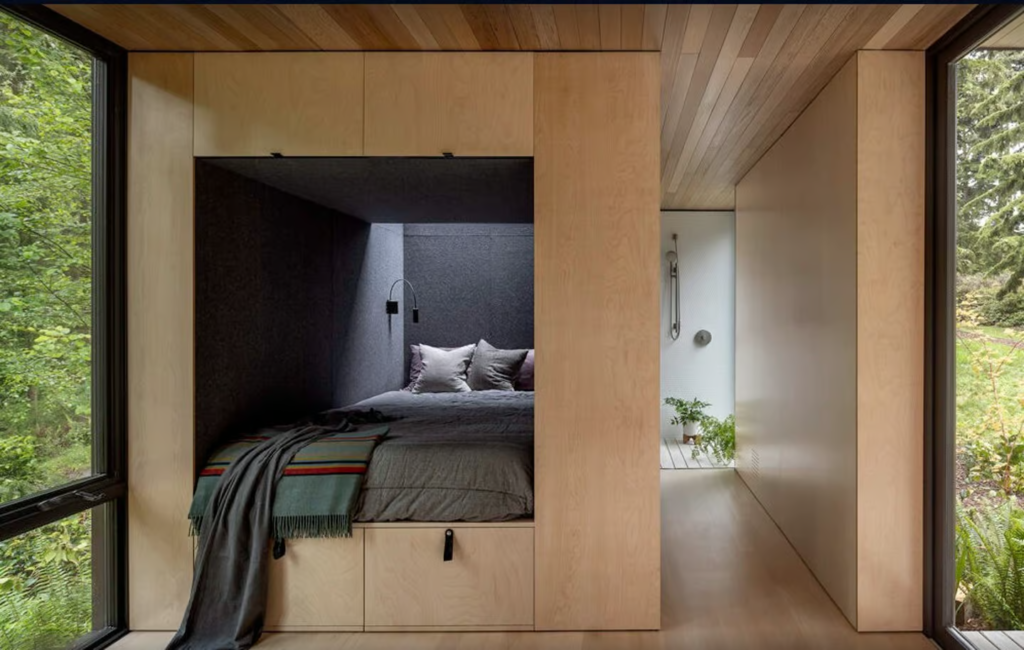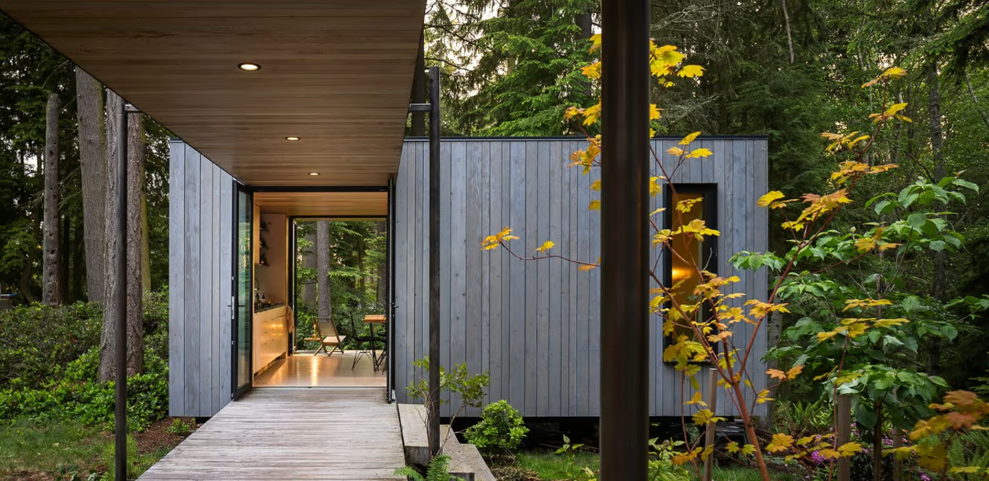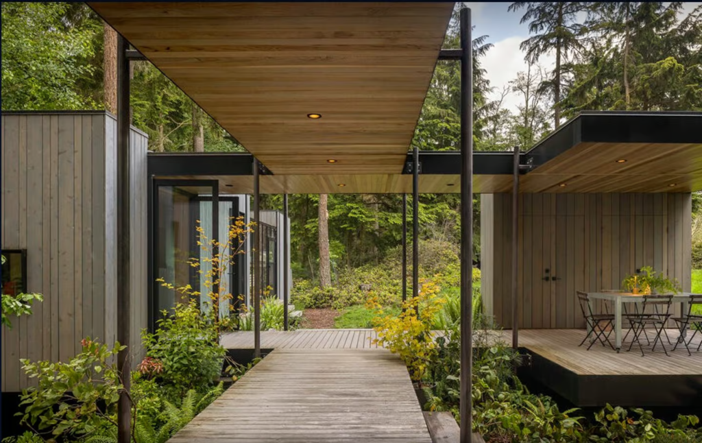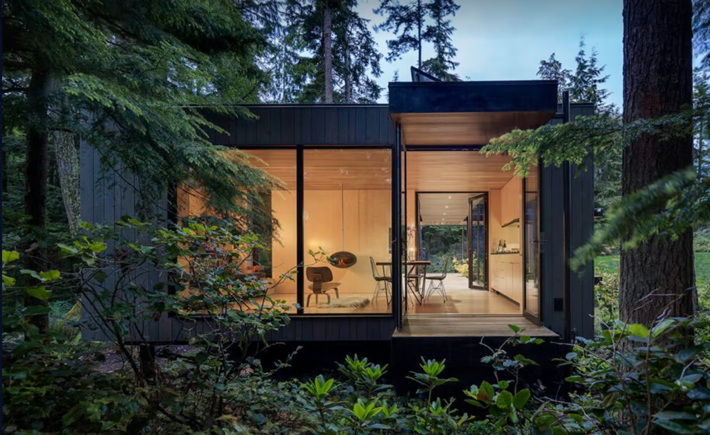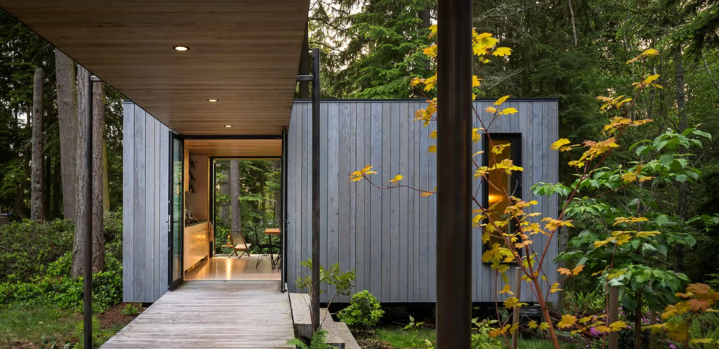 The Whidbey Puzzle Prefab by Wittman Estes, a renowned architecture studio based in Seattle, is redefining what it means to live sustainably in a modern prefab tiny house. Located on Washington State’s scenic Whidbey Island, this 600-sq-ft (55.75-sqm) prototype is a shining example of how a luxurious prefab tiny house can balance eco-friendliness, flexibility, and style. Designed to minimize environmental impact, this innovative prefab tiny house offers a forward-thinking solution for those looking to embrace sustainable living without compromising on comfort.