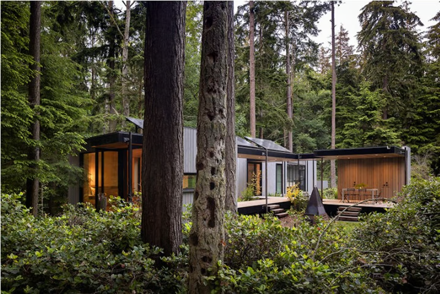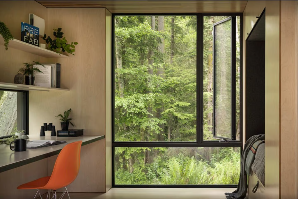 What makes the Whidbey Puzzle Prefab truly stand out is its clever modular design. Comprising four distinct sections, this modern prefab tiny house can be effortlessly reconfigured to suit a variety of environments—from remote forest hideaways to bustling suburban lots—without disturbing the natural landscape. The flexible layout allows homeowners to adapt the home to their evolving needs, creating a personalized living experience that grows and changes alongside them.